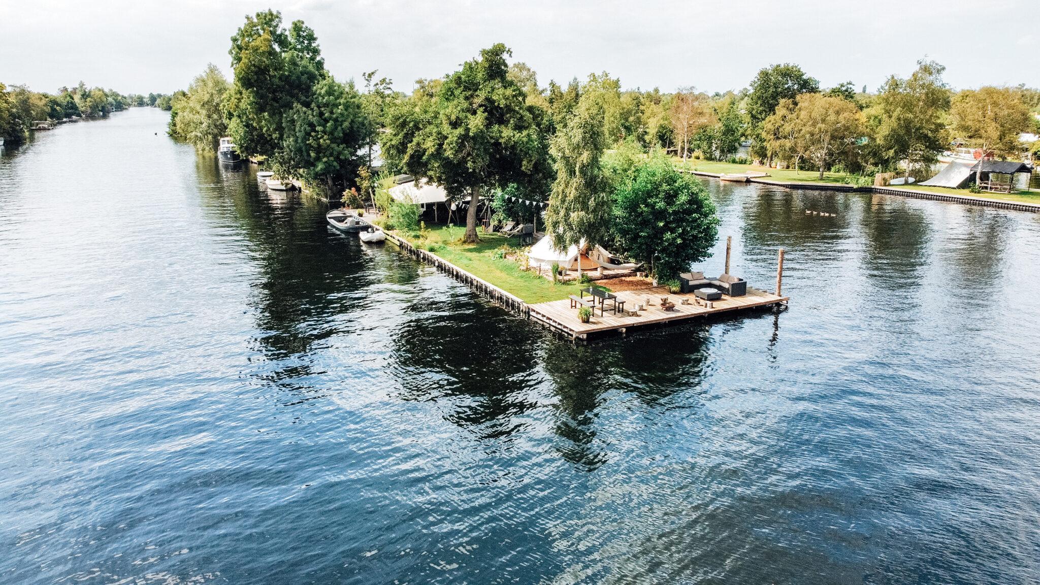 Island Life is a private island of about 400 m2 located in the Noorderplas of the Vinkeveense Plassen, a nature and water sports area in the north-west of the Dutch province of Utrecht. That’s really in the middle of nature, just about 20 minutes from Amsterdam.