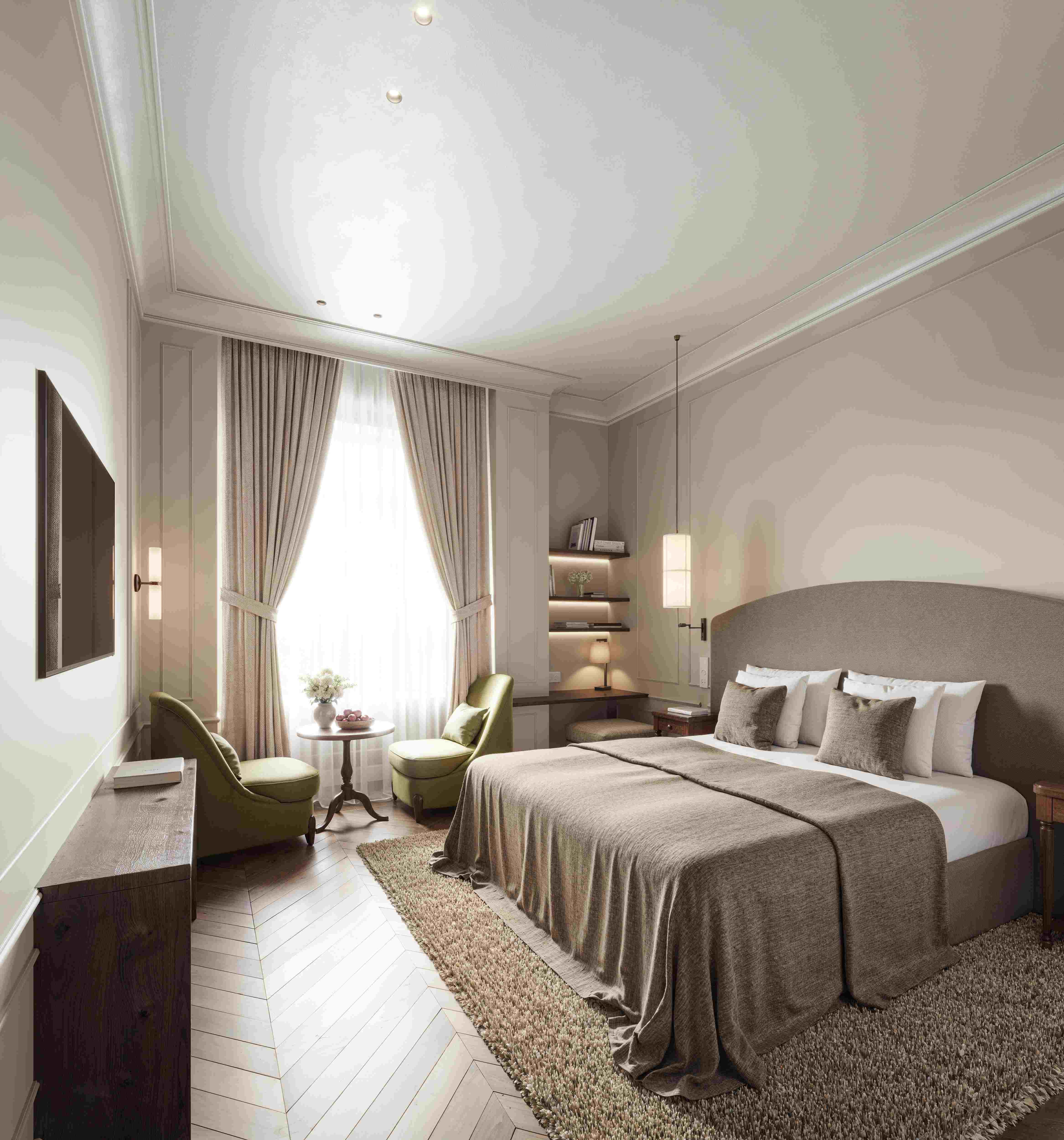 The retreat offers 81 rooms and suites spread across three buildings: the historic Château, the rustic Remise and the modern Carré. Each features natural materials, warm tones and a blend of comfort and sustainability. Wellness suites with private spa facilities are also available.