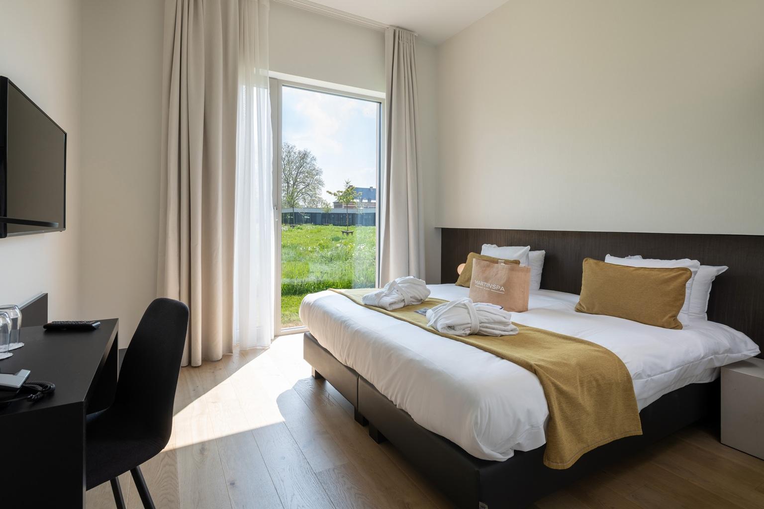 Après une journée productive, détendez-vous au Martin’Spa Bilzen, équipé d’un sauna, hammam, piscine et espace de relaxation avec vue sur la nature. Si vous restez plusieurs jours, vous logerez dans des chambres luxueuses aux tons chaleureux et au confort absolu. Les suites, situées dans la partie historique du bâtiment, ajoutent un cachet authentique à votre séjour. Et pour vos repas, vous serez comblé au restaurant Akko, où un chef ayant officié dans des cuisines étoilées vous propose une expérience gastronomique dans un cadre contemporain.