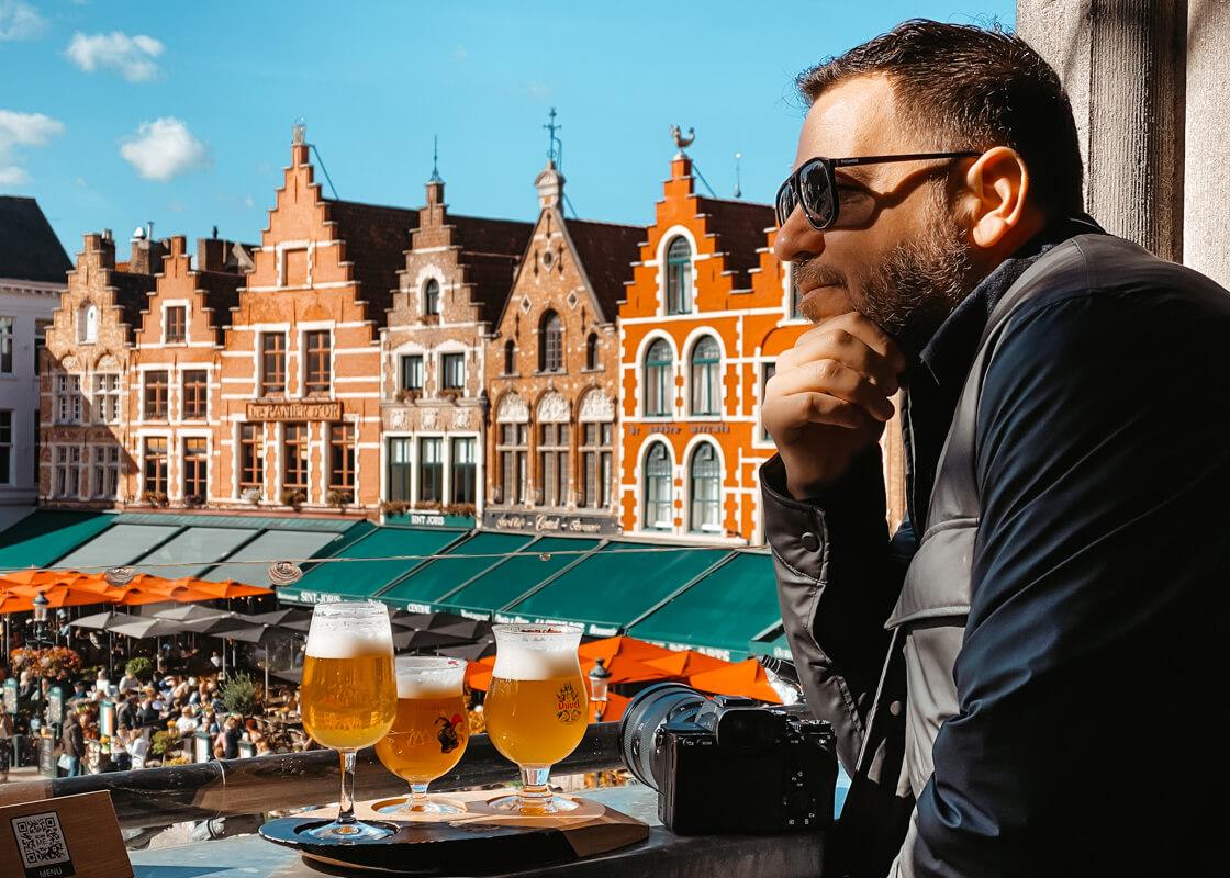 Geniet van een aperitief met een prachtig uitzicht op de markt van Brugge en het indrukwekkende 13de-eeuwse Belfort.