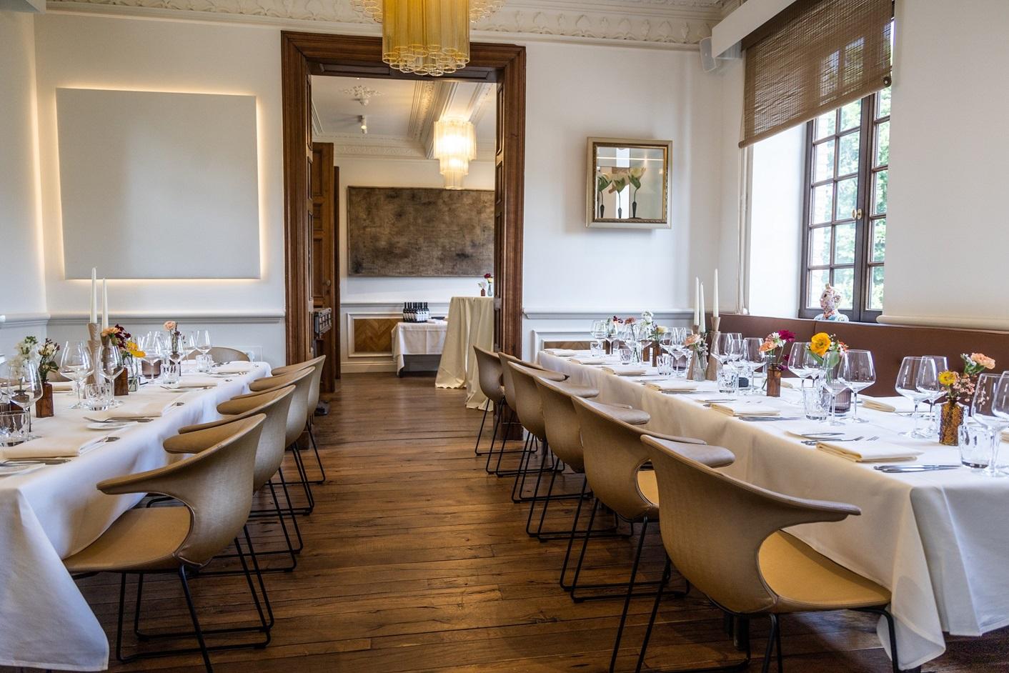 Het biedt plaats aan maximaal 170 personen voor een walking diner of 100 personen voor een zittend diner. Bij grotere groepen worden de gasten verspreid over verschillende ruimtes die vloeiend in elkaar overlopen. Wilt u uw diner combineren met een vergadering? Dat kan! Er is ruimte voor vergaderingen tot 40 personen
